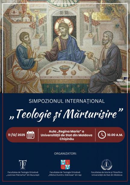 Facultatea de Teologie Ortodoxă „Justinian Patriarhul” din București, Facultatea de Teologie Ortodoxă „Sfântul Dumitru Stăniloae” din Iași și Facultatea de Istorie și Filosofie a Universității de Stat din Moldova organizează Simpozionul Internațional „Teologie și Mărturisire”, care va avea loc astăzi, începând cu ora 10.00, în Aula „Regina Maria” a Universității de Stat din Moldova, Chișinău.